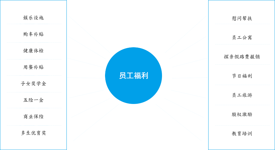 在法定福利的基礎(chǔ)上,公司為員工提供全方位的企業(yè)福利,涉及到員工衣食住行各個(gè)方面,共 計(jì)15大項(xiàng),21個(gè)小項(xiàng),為員工的生活雪中送炭、錦上添花